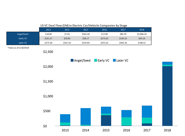 Electric vehicle startups have raised more than $2 billion in the U.S. over the first months of 2018 alone, a huge increase over the $650 million raised in 2017, according to data from PitchBook. And the investment trends point to more competition for Tesla from established car companies and upstart manufacturers alike in the next few years.