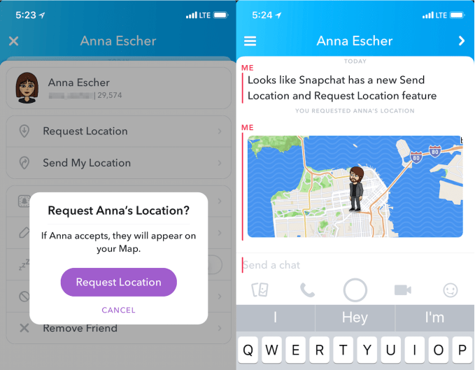Snapchat is taking another shot at location after its always-on coordinate-broadcasting Snap Map proved a bit invasive for some users. Snapchat now lets you send your ongoing real-time location to a friend, or request theirs, which show up on the Snap Map and within your message thread.