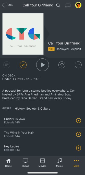 The feature also includes the standard media controls you’d expect, like forward and back and support for variable speed playback, as well as a “mark as played” option, all available through Plex’s upgraded media player. That option can help you transition to Plex’s podcast platform from another app, as you won’t have to lose your place, in terms of what you’ve listened to, and what you’ve not. And it lets you continually mark off any episodes you may have caught elsewhere, or just otherwise want to skip.