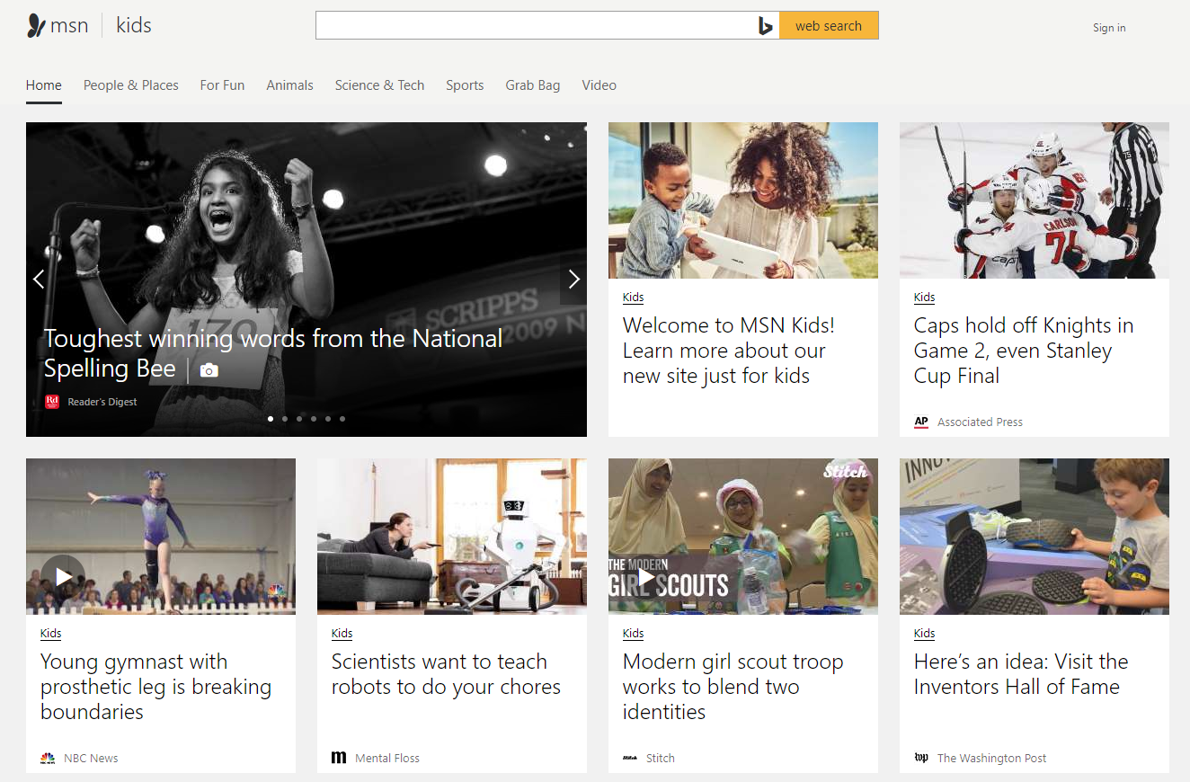 As for MSN Kids, Microsoft notes that the site will curate information from trusted sources, including Time for Kids, Popular Science, Sports Illustrated for Kids, National Geographic, and USA TODAY. It’s worth noting that there is no sponsored content or advertising on the site.