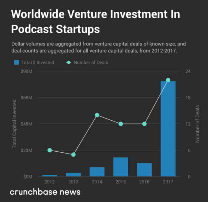 And although many podcasters make money, typically through sponsorships, the podcasting industry (such as it is) hasn’t received much in the way of venture funding until quite recently. 2017 was a pivotal year for venture investment in the industry.