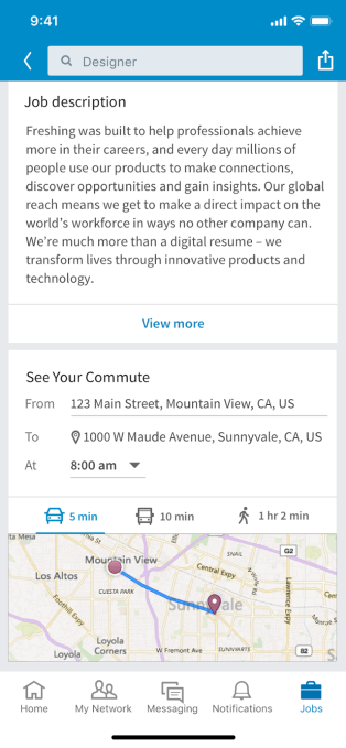 The company’s own LinkedIn survey data indicated that 85 percent of professionals would take a pay cut for a shorter commute. “The Your Commute feature is a quick and easy way for members to access insight into their potential commute directly within the job posting on LinkedIn and empower them to make more informed career decisions.”