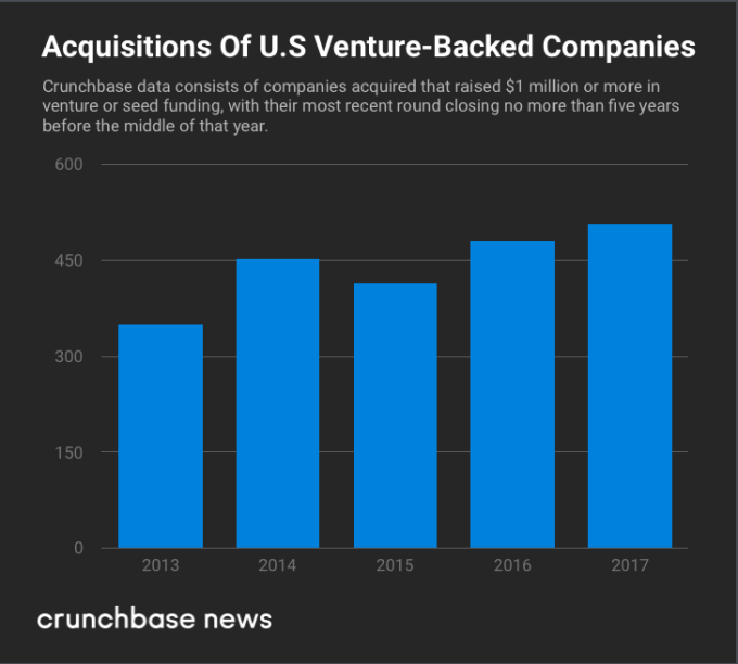 So far this year, acquirers have spent just over $20 billion in disclosed-price purchases of U.S. VC-funded companies, according to Crunchbase data. That’s about 80 percent of the 2017 full-year total, which is pretty impressive, considering we’re barely five months into 2018.