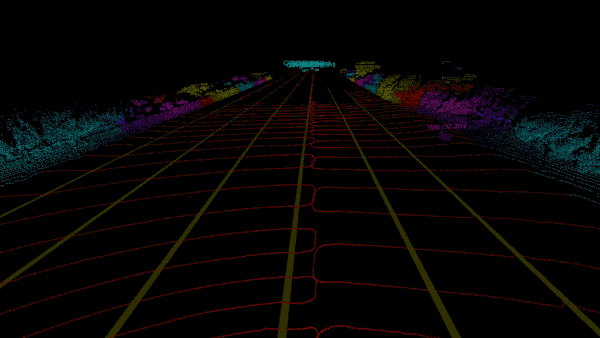 As an example (illustrated in the gif above), imagine a car traveling down the road at 65 MPH. Luminar’s lidar unit, constantly bathing the area in front of it with lasers and analyzing the reflected signal, spots a stopped car blocking the shoulder about 700 feet ahead using its own smarts. Closer up it detects that there’s a person there and a spare tire on the ground.