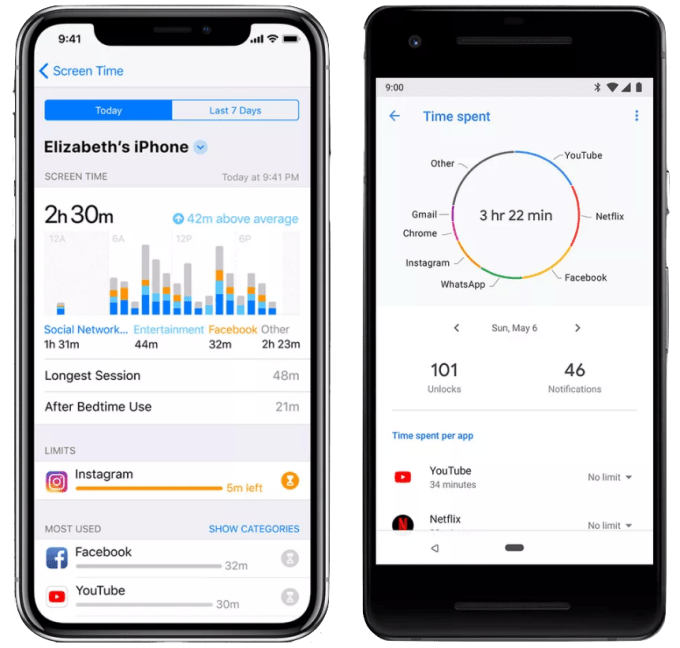 Both let you see overall usage of your phone and stats about individual apps. iOS lets you easily dismiss alerts about hitting your daily limit in an app but delivers a weekly usage report (ironically via notification), while Android will gray out an app’s icon and force you to go to your settings to unlock an app once you exceed your limit.