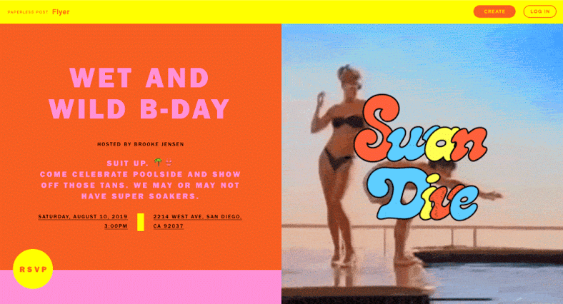 One other key feature of Flyer is that it’s not necessarily an email product. While Paperless Post Cards require an email address to send and receive, Flyer simply opts for a web address, letting users send via text, post on social media, send via email, or send through another messaging client.