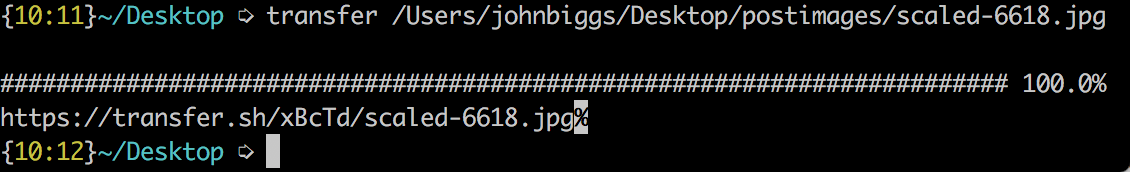 The service has basically a file dump. You send a file to transfer.sh via curl and it stays there for fourteen days until its automatically deleted. For example, I uploaded this picture by adding a bit of code to my .bashrc.