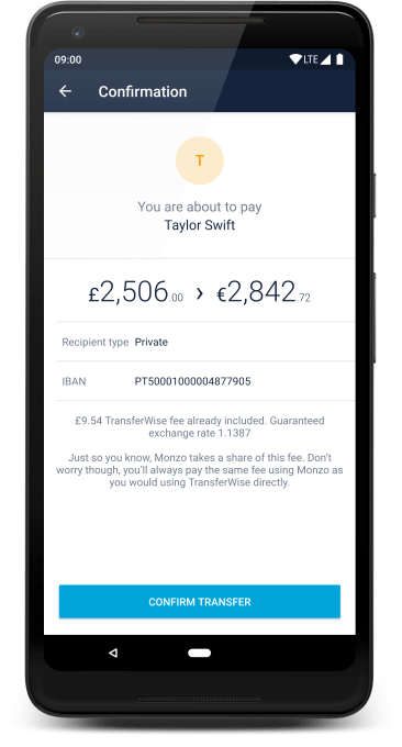 The TransferWise functionality will start rolling out to Monzo users as of today and will let them send money from their current account to 16 of the most popular currencies, with “more being added in the near future”. The user experience will be near-identical to TransferWise’s own app, and will see transfers happen at claimed ‘mid-market’ rates in addition to TransferWise’s low and transparent fee. This means you’re told upfront exactly how much you’ll pay in fees and the amount you’ll receive in the exchanged currency.