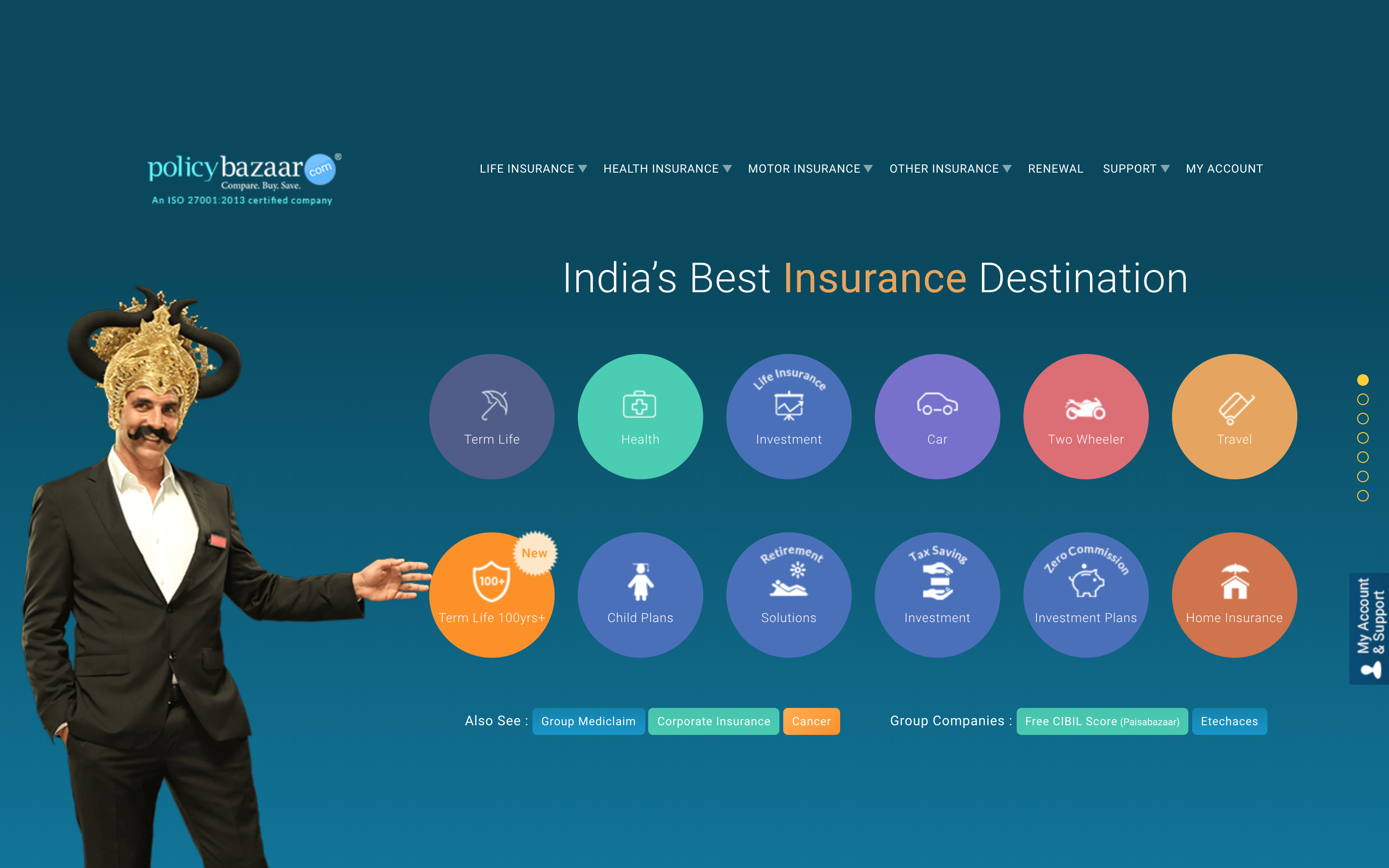 PolicyBazaar was founded in 2008 initially as an information portal for learning about insurance and insurance programs. Today, the company operates its own digital insurance brand and a marketplace that aggregates and selects deal from across the industry.