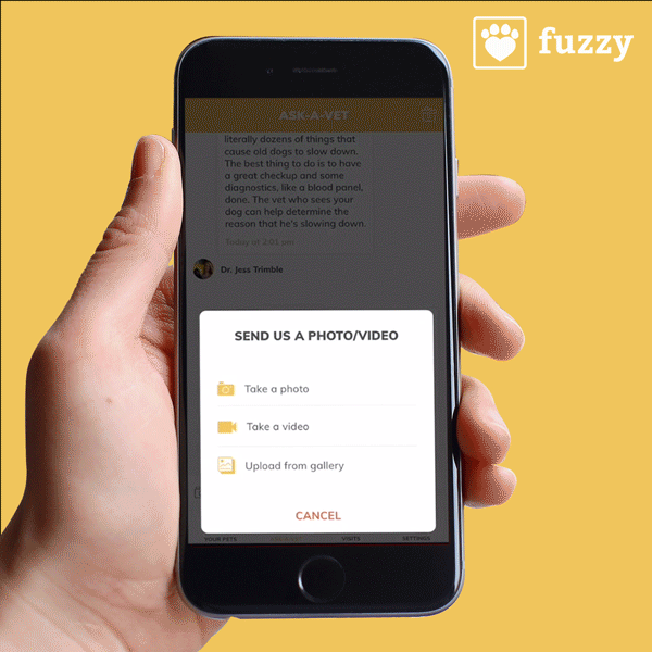 Fuzzy Pet Health Connect, as the new telemedicine service is called, works over the Fuzzy Pet Health mobile app, allowing customers to send text, pictures and videos to a vet at any time, then receive real-time medical help.