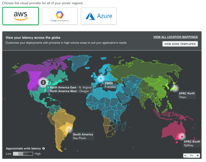 The beauty of this approach from Mongo’s perspective is that they don’t even have to worry about building a worldwide data center presence of their own. Instead, they simply piggyback on the global locations of each of the main public cloud providers, AWS, Microsoft and Google.