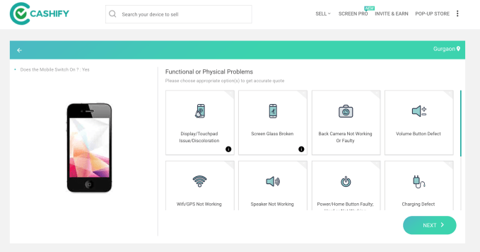 With Cashify, sellers simply fill out some details online about their device, then Cashify dispatches a representative who comes to their house to perform diagnostic checks and gives them cash for the device that day. The startup also offers an app which automatically carries out the checks — for example ensuring the camera, Bluetooth module, etc. all work — and offers a higher cash payment for the user since Cashify uses fewer resources.