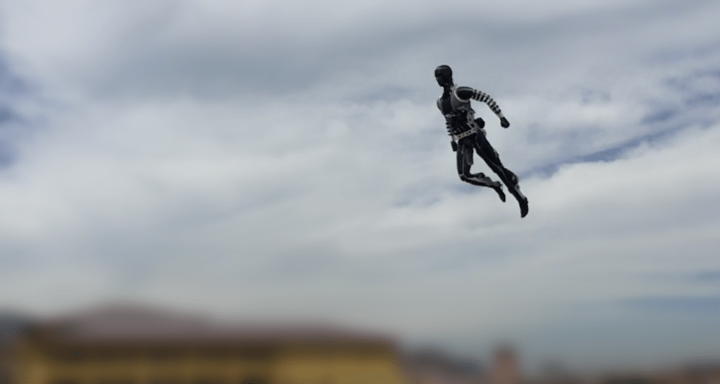 The Stuntronics robot features on-board accelerometer and gyroscope arrays supported by laser range finding. In its current form, it’s humanoid, taking on the size and shape of a performer that could easily be imagined clothed in the costume of, say, one of The Incredibles, or someone on the Marvel roster. The bot is able to be slung from the end of a wire to fly through the air, controlling its pose, rotation and center of mass to not only land aerial tricks correctly but to do them on target while holding heroic poses in midair.