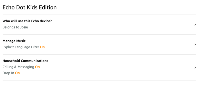 The problem, largely, is that FreeTime isn’t really integrated with the Alexa app. All of this – from explicit content filters to whitelisting skills to turning on or off calling, messaging and drop-ins – should be managed from within the Alexa app, not from a separate website.