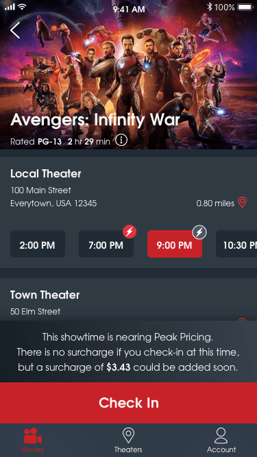 In an FAQ on its site, MoviePass explains its new dynamic pricing plan and the accompanying surcharges in more detail, but not a lot of detail. The company fails to really explain what exactly will determine price fluctuations beyond stating that “movies that are high in demand for title, date, or time of day will be impacted.” It doesn’t provide guidelines for what those surcharges will look like, though a screenshot it provides suggests we might pay $3.43 more to see Avengers: Infinity War at 7:00 PM.