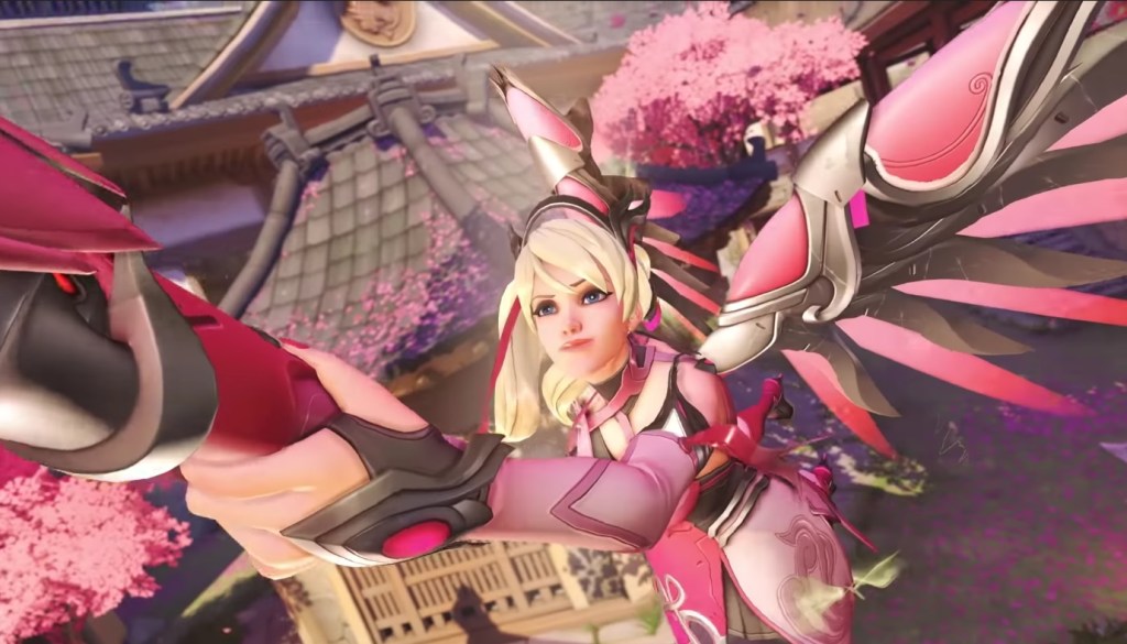 Players could for a limited time purchase a special “skin,” or 3D model, for the character Mercy — she’s the most powerful healer in the lineup, so the choice makes sense, even though the statuesque blonde isn’t exactly their most interesting character work. (A Pink Genji would probably look cool, but it would probably just make more people play him — a regrettable outcome.)