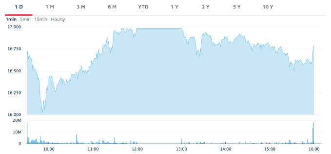 Xiaomi enjoyed an understated debut. The stock opened at HK$16.60, below the list price of HK$17, and it quickly fell to HK$16 before later recovering. Its closing share price for the first day of trading was HK$16.78.