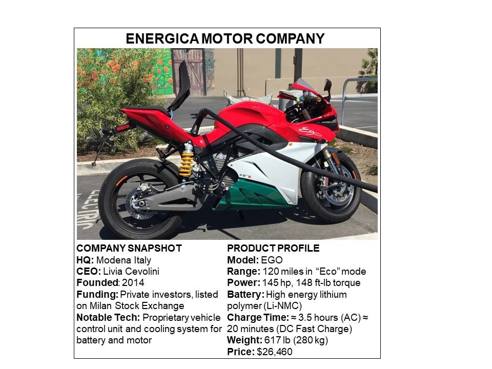 Alta, Energica, and Zero have niche markets for their unique tech and design.