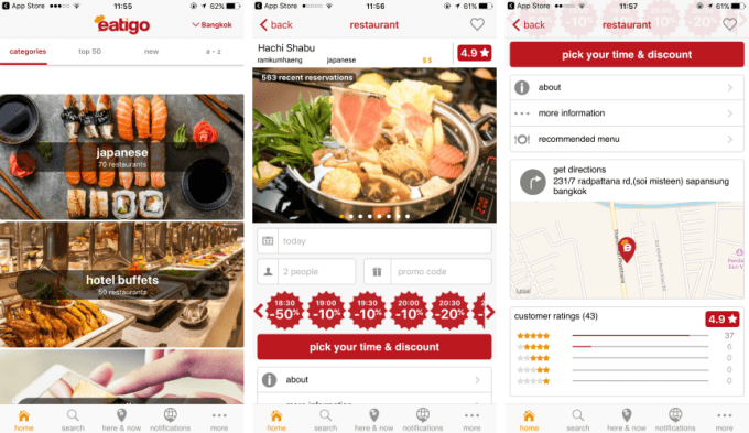 Eatigo was founded in Bangkok in 2013 and it is designed to help restaurants fill unused inventory by offering deals to customers at certain times of the day. The appeal to eaters is deals, but unlike group buying services such as Groupon, Eatigo encourages restaurants to manage their inventory and time so that they are filling their quiet hours for additional revenue not ramming people into restaurants for the sake of it. The latter scenario, of course, puts pressure on staff, reduces service quality and is generally not conducive to a good dining experience. It is also questionable whether discounts drive long-time loyalty, a cornerstone the Groupon of old was built on, but I digress.