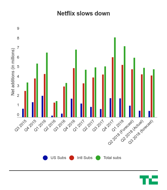 While it’s still adding subscribers (a lot of them), it fell below the forecasts it set for itself during the second quarter. That’s shaved off more than $10 billion in its market capitalization this afternoon. This comes amid a spending spree by the company, which is looking to create a ton of original content in order to attract a wider audience and lock them into that Netflix ecosystem. That could include shows like GLOW, Jessica Jones, 3% or even feature films. But it’s still a tricky situation because it needs to be able to convert shows from that kind of crazy spend schedule into actual subscribers.