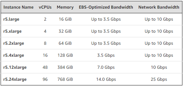 The R5 instances, which can feature up to 96 cores and 768 GiB of memory, are mostly meant for in-memory caching applications and in-memory and big data analytics.