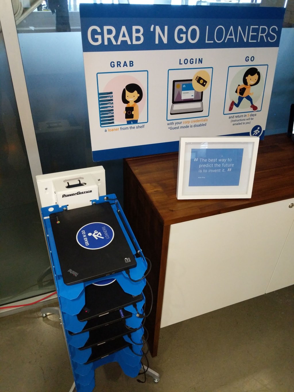 Employees who want to use one of these ‘Grab and Go’ stations simply pick up a laptop, sign in and move on with their day. When they are done, they simply return the laptop. That’s it. Easy.