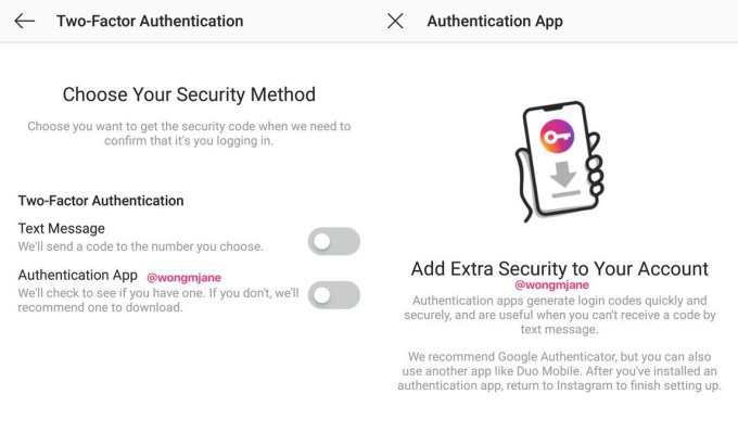 But now Instagram has confirmed to TechCrunch that it’s building a non-SMS two-factor authentication system that works with security apps like Google Authenticator or Duo. They generate a special code that you need to log in that can’t be generated on a different phone in case your number is ported to a hacker’s SIM card.