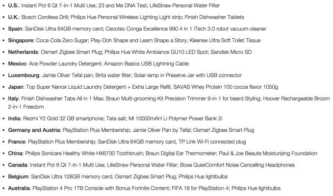 Different countries had their own best-sellers, which tended to include smart home items, electronics, gaming systems, tools, and other items for the home.