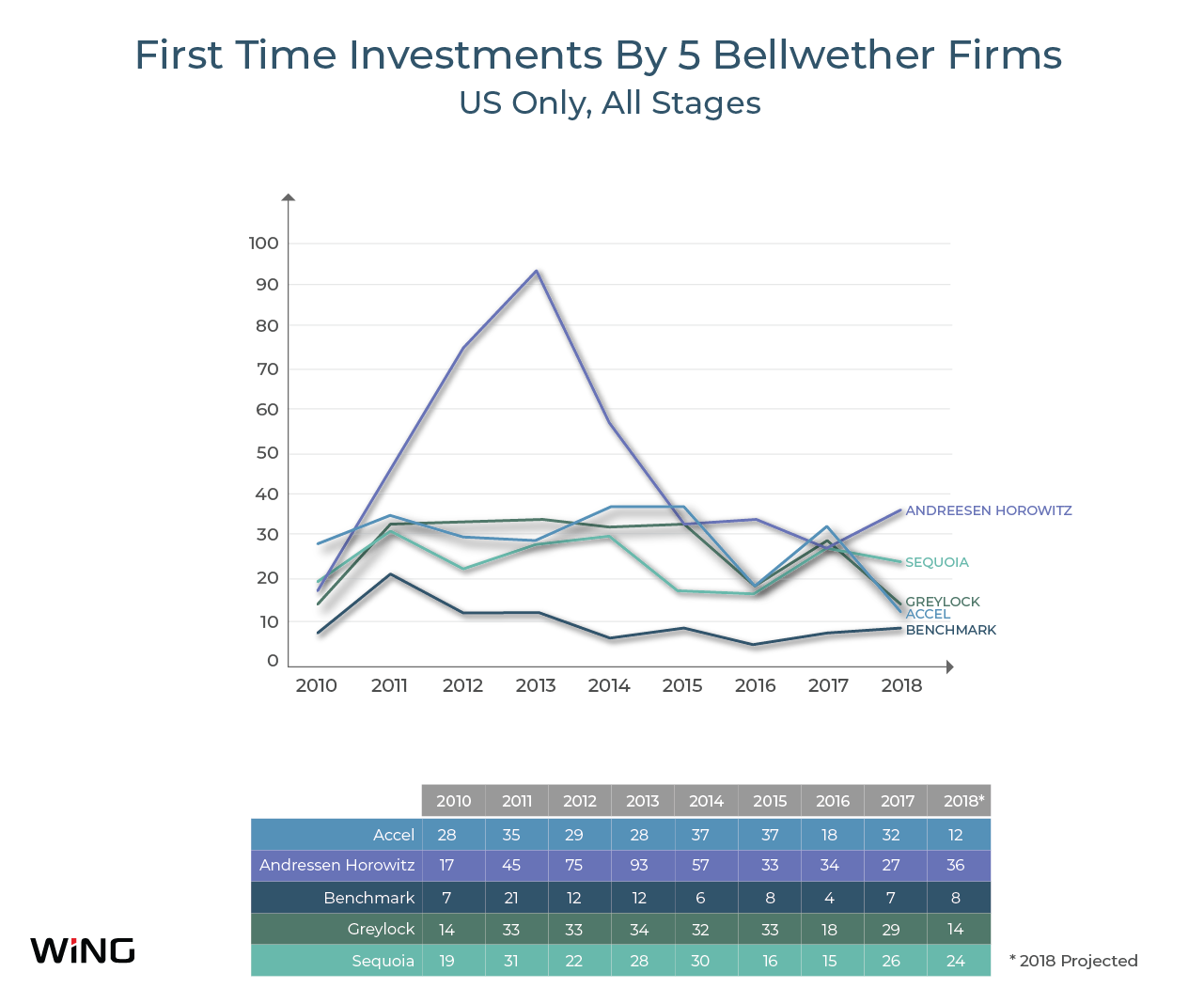 PW: They’re kind of swamped with the data of less discriminating investors, though. You really want to focus on the signal, which is why we track what the 21 leading venture firms are doing. And in that analysis, we found no signs of a slowdown. We found instead that there was a peak of activity in 2013 and 2014, a pullback in 2016, and an uptick since.