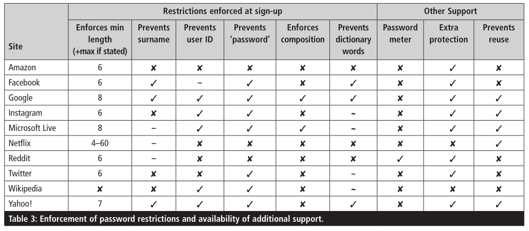 Although the university writeup notes that Google, Microsoft and Yahoo had the best password practices and Amazon, Reddit and Wikipedia had the worst, it diplomatically declined to go into specifics. Fortunately, I acquired the paper for myself and am prepared to name and shame.