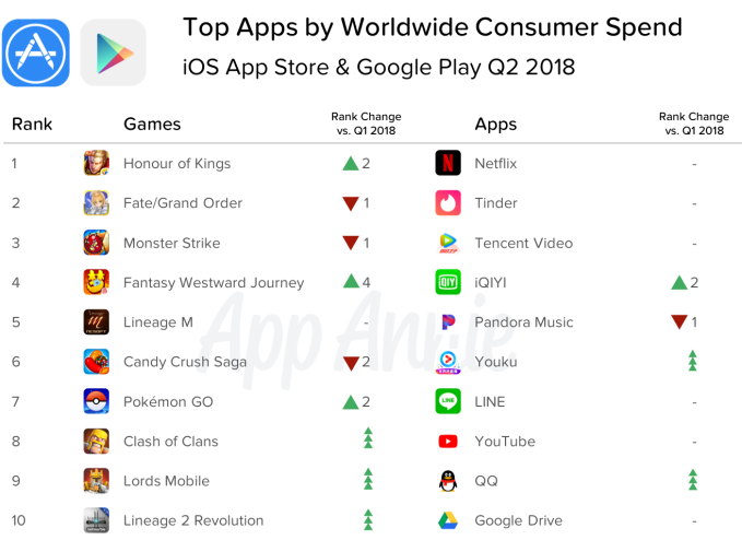 And the top 10 apps by spending were still largely those subscription-based entertainment services like Netflix, Tencent Video, iQIYI, Pandora, Youku, and YouTube.
