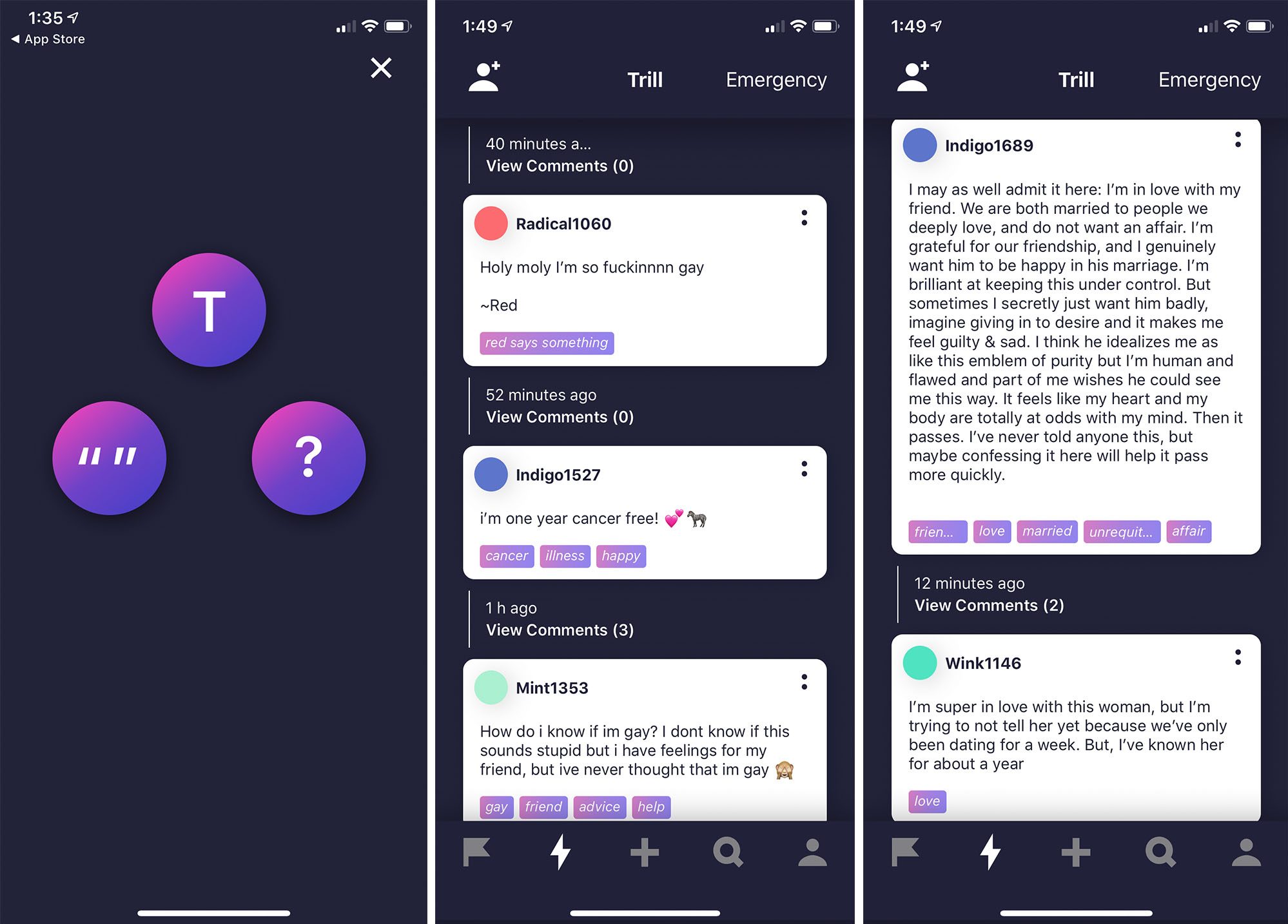 Trill Project, founded by three high school girls, recently launched out of private beta to help people safely express themselves online. For those unfamiliar with the word “trill,” it’s a combination of “true” and “real.” An investor described it to me as a positive Yik Yak.