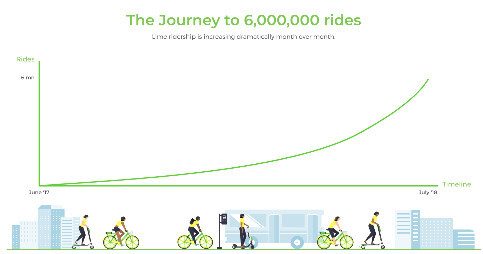 Lime, the bike and scooter-share company that recently raised $335 million from GV, Uber and others, has hit six million rides since launching last June. Lime, which first launched in Greensboro, N.C., has since expanded to 70 cities.