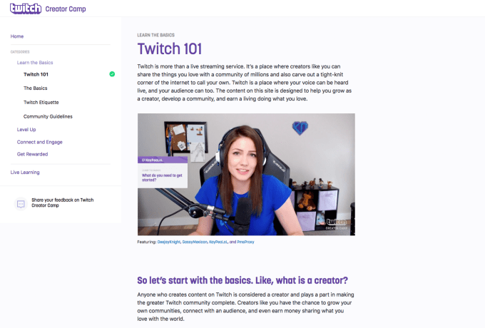 On Twitch Creator Camp, the company is bringing in successful creators to help educate the would-be streamers on a variety of often-discussed topics. These insights will be shared as articles, videos and live streams.