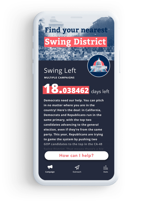For now, its focus is on raising awareness about the candidate and their issues, and getting people to the polls. It’s not offering the sort of “call your congressman”-style outreach efforts you’ll find in some other political apps.