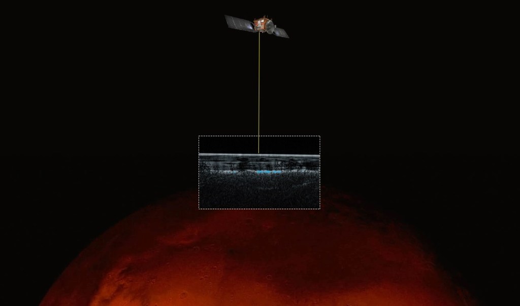How did they do it? The study used data from the Mars Advanced Radar for Subsurface and Ionosphere Sounding, or MARSIS, aboard the European Space Agency’s Mars Express Orbiter. It’s a ground penetrating radar that has already contributed to the story of water on Mars, with its readings suggesting basins and other features indicating oceans once existed there.