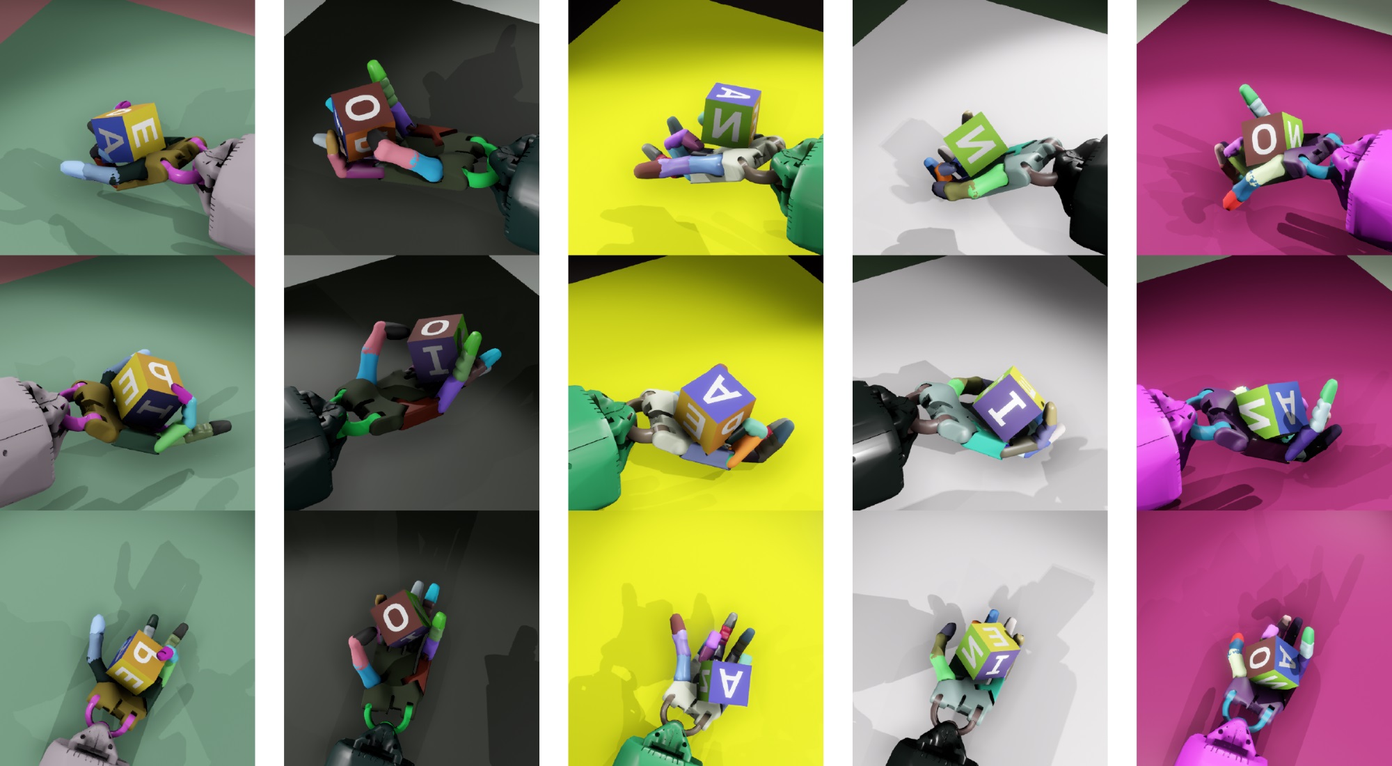 The things we do with our hands without even noticing, like turning an apple around to check for bruises or passing a mug of coffee to a friend, use lots of tiny tricks to stabilize or move the object. Dactyl recreated several of them, for example holding the object with a thumb and single finger while using the rest to spin to the desired orientation.