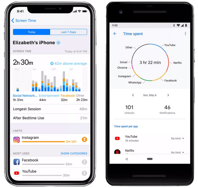 While iOS 12’s Screen Time and Android’s new Digital Wellbeing features both count your minutes on different apps too, they offer more drastic ways to enforce your own good intentions. iOS will deliver a weekly usage report to remind you the features exist. Android’s is best-in-class because it grays out an app’s icon and requires you to open your settings to unlock an app after you exceed your daily limit.