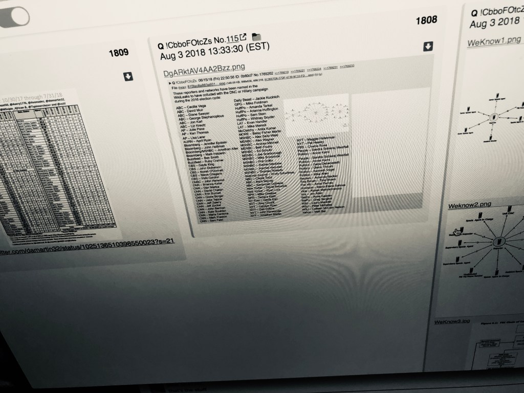 Q, to the uninitiated, is a 4Chan poster who claims to be connected deep inside the US government. Q claims to have high level clearance and posts in furtherance of the conspiracy theory that the government has been running massive pedophile ring and that Trump and Robert Mueller are working like Scooby Doo and Shaggy to bring it down. Sites like QAnon.pub are archives of Q’s cryptic and often ridiculous claims.