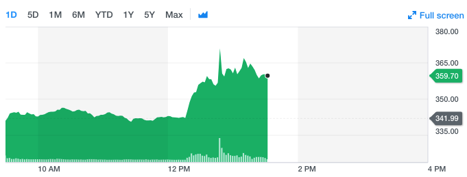 Musk’s original tweet came shortly after news broke that a Saudi Arabian sovereign wealth fund bought a $2 billion stake in Tesla. Tesla’s stock rallied following Musk’s tweets, jumping as high as $371.