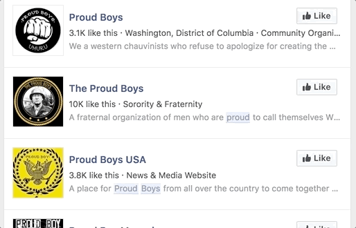 The Proud Boys, a self described “Western chauvinist” organization that often flirts with more hard-line groups of the far right, runs an elaborate network of recruiting pages on Facebook to attract and initiate members. While McInnes maintained a presence on many platforms, Facebook is the heart of the group’s operations. It’s there that the Proud Boys boast more than 35 regional and city-specific groups that act as landing pages for vetting thousands of new members and feeding them into local chapters.