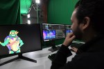 Behind the scenes, this “magic” was made possible by four computers, two puppeteers, two voice actors and a team of eight people running the various stations. (The crew were all wearing ninja bandanas, naturally). Adobe Character Animator, Epic Unreal Engine and NewTeK NDI were all used to create the interview experience. The pièce de résistance was the bright purple keyboard that was piloted by two team members (one for each turtle). Each key featured a different animated pose, so the actions of the turtles could be “animated” in real time, akin to playing a symbol piano.