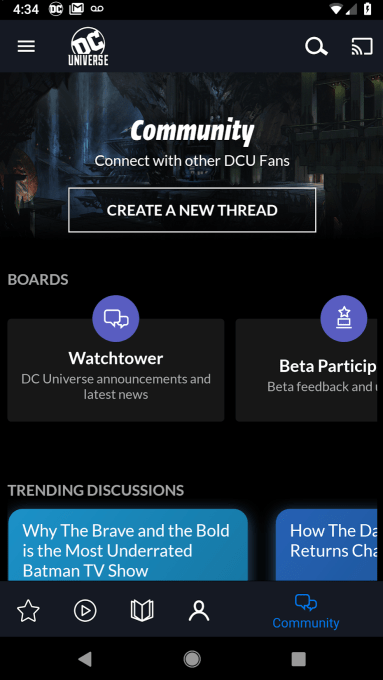 Like most streaming services, the app also supports the ability to pick up where you left off, with features like “dive back in” and “continue watching.” And underneath the titles themselves are not just the episode lists and details, but also a link to the community.