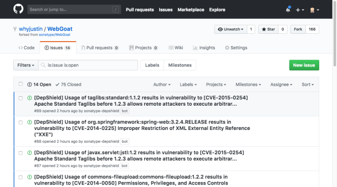After a developer installs DepShield, it checks a code commit in GitHub against the known vulnerabilities in the OSS Index with recommendations on how to proceed. The company’s commercial offerings includes a policy engine to automate remediation. The free version simply lets developers know if there are issues, and they can go back and fix them if need be.