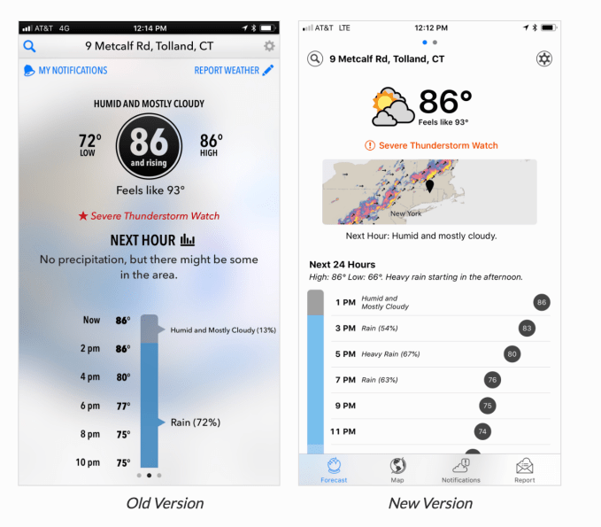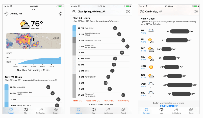 While no weather app is perfect, Dark Sky allows users to report the weather at their location which helps improve the app’s hyperlocal forecasts. That means the app may seem to be more accurate in places where there’s more consumer adoption. If you live somewhere rainy, then there’s a good chance a number of Dark Sky users are nearby because of the app’s key focus on precipitation forecasts.