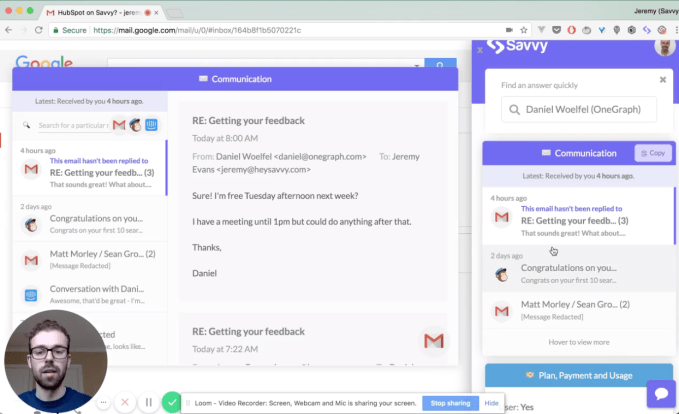 Imagine being the all-seeing, all-knowing lookout for all of your company’s interactions with vendors, suppliers and customers. That’s what the YC-backed startup Savvy is looking to provide to users by bringing together all of a company’s cloud applications into a single view. “Savvy is the glue between your work applications.” Not just slang for pirates, savvy is the know-how for all external interactions and can make businesses more savvy about their communications and operations.