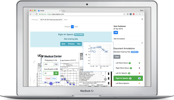 With RDMD’s app, a patient’s medical data that’s strewn across hospitals and health facilities can be compiled, organized and synthesized. Handwritten physicians’ notes and faxes are digitized with optical character recognition, structuring the data for scientific research. RDMD lays out a patients’ records in a disease-specific timeline that summarizes their data that can be kept updated, delivered to specialists for consultations or shared with their family and caregivers.