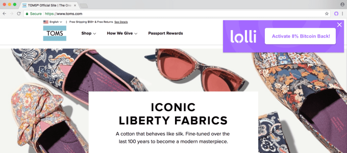 Out of that thinking was born Lolli. Lolli is a rewards platform that offers users BTC when they shop at participating online retailers. Consumers install a browser extension or start from Lolli’s website to discover retailers offering crypto rewards (smartphone and tablet apps are “coming soon”). Each retailer sets their own “cashback” (cryptoback?) rate, and that BTC reward is then moved into a Lolli wallet.