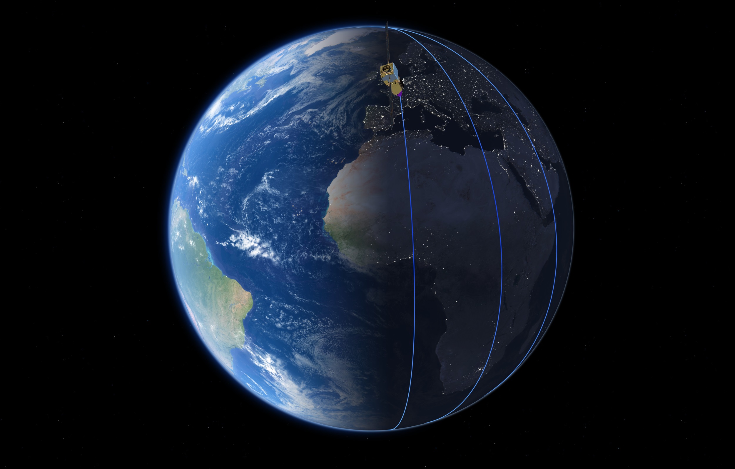 Aeolus’s orbit is a slightly unusual one called a sun-synchronous dusk/dawn orbit. It will hover at 320 kilometers above the terminator, the line demarcating night from day, while circling around the poles every 90 minutes. So it’s zipping in the north-south axis at great speed, and takes a week to sample the whole globe.