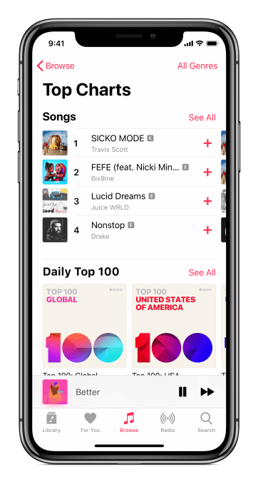 Apple Music is rolling out a new playlist series that will feature the Top 100 songs on Apple Music globally and for those countries where Apple Music is available. Because they’re playlists, users will be able to add these top charts for their country or the Top 100 Global songs to their library so they can stream them any time, or listen offline.